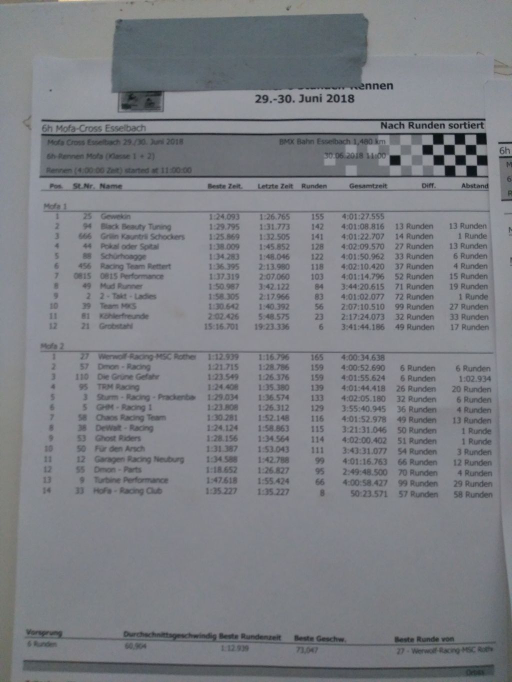 Offizielles Ergebnis des 4 Stunden Rennen 2018: